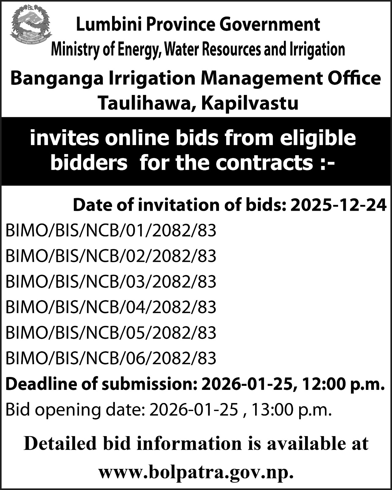 शिलबन्दी बोलपत्र आह्वानको सूचना (लुम्बिनी साझेदारी वन उपभोक्ता समूह, रुपन्देही) २०८२।०९।०७