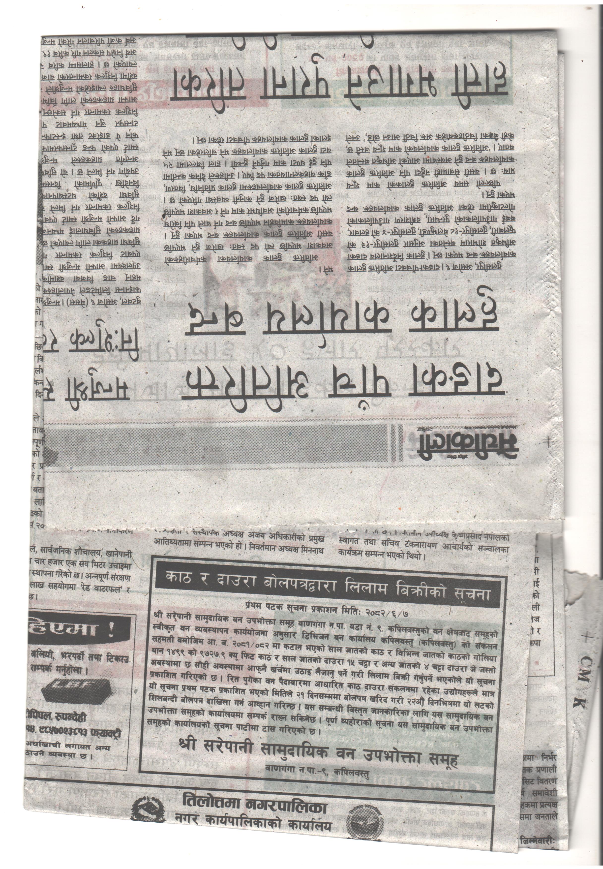 काेईलीचाैर सानाकिसान सामुदायिक वन उपभोक्ता समूह, वाणगंगा-९, कपिलवस्तुकाे काठ दाउरा लिलाम बिक्रीको सूचना तथा सच्चाइएको सूचना
