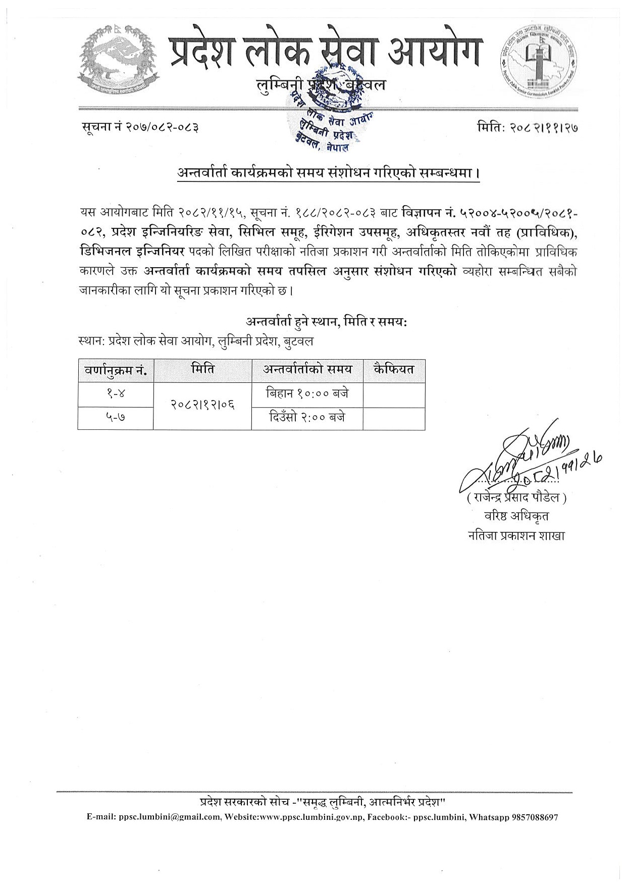 मिति 2082-11-17 गते आइतबार देखी 2082-11-27 गते बुधबार सम्मको लिखित परीक्षा लिन बाँकी रहेका परीक्षार्थीहरुको लिखित परीक्षा सम्बन्धी सूचना !