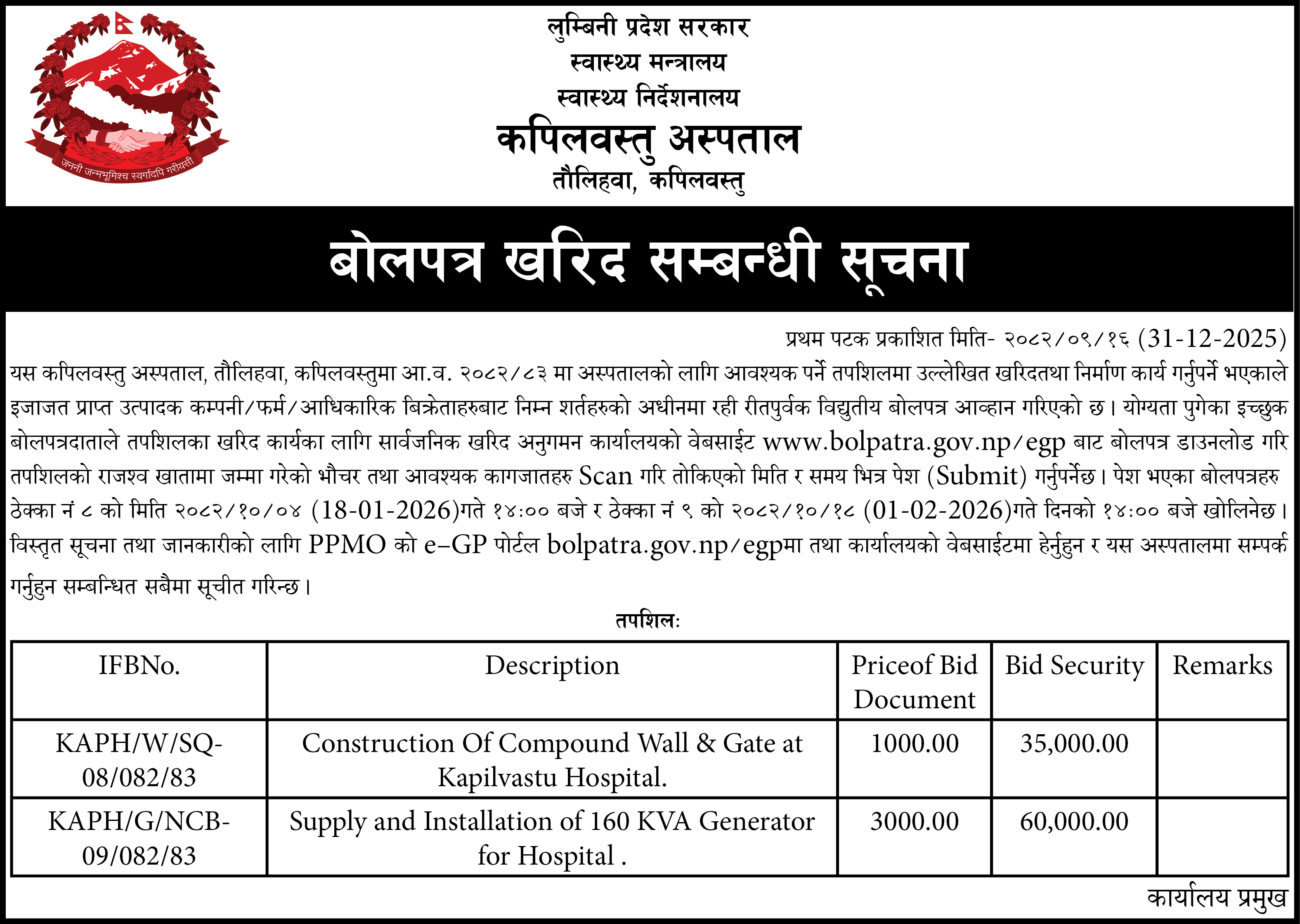 सबै सरकारी सूचना लिंकहरू तालिकामा उपलब्ध छन्। कृपया थप सूचनाको लागि लिंकमा क्लिक गर्नुहोस्।