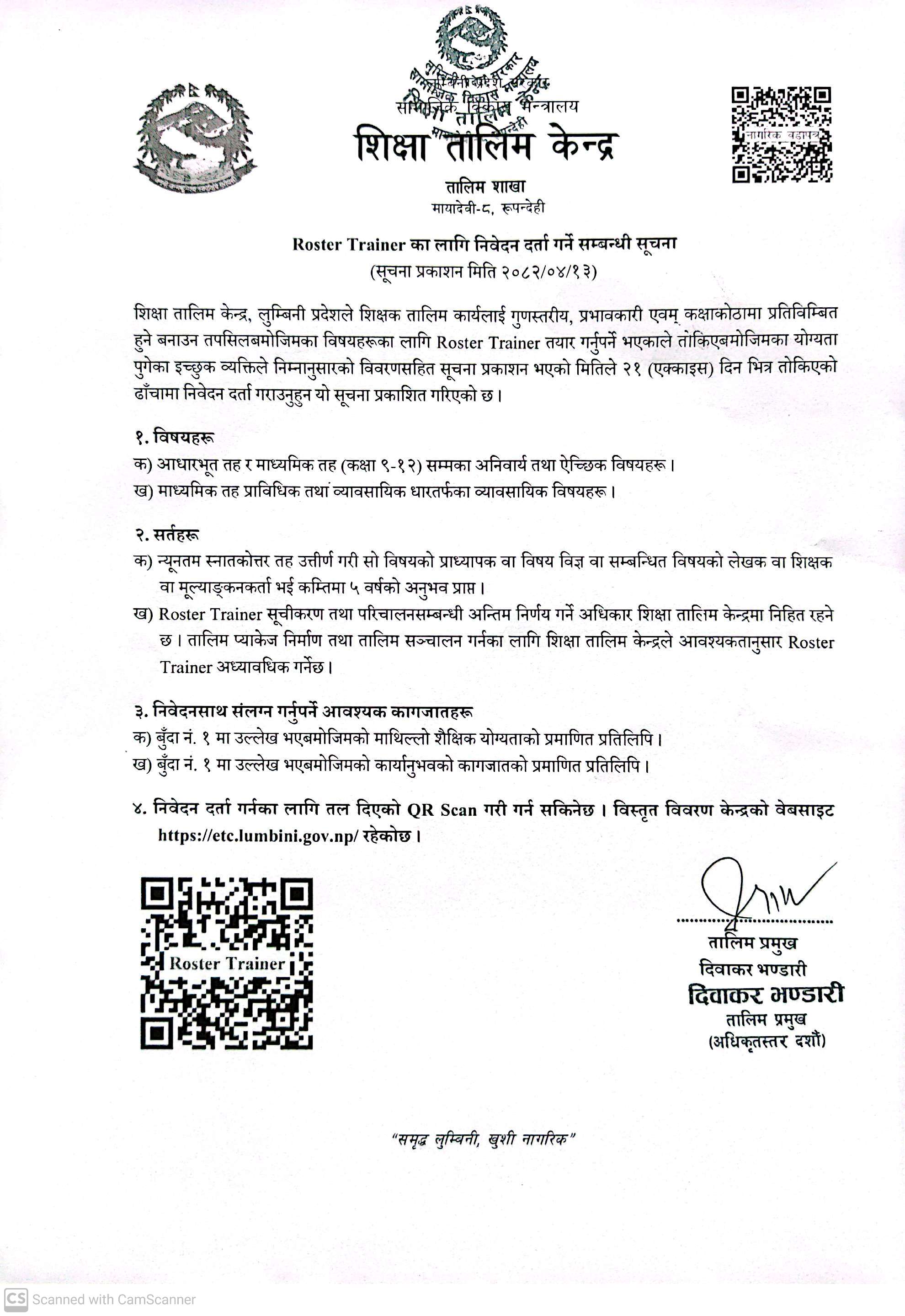 Roster Trainer का लागि निवेदन दर्ता गर्ने सम्बन्धी सूचना